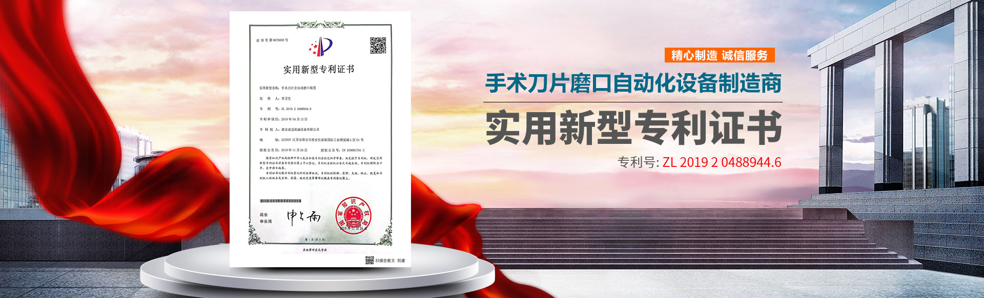 我公司主要設計、研發、生產與銷售手術刀片磨口自動化設備,擁有專利,專利號為:ZL 2019 2 0488944.6。